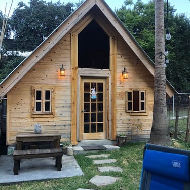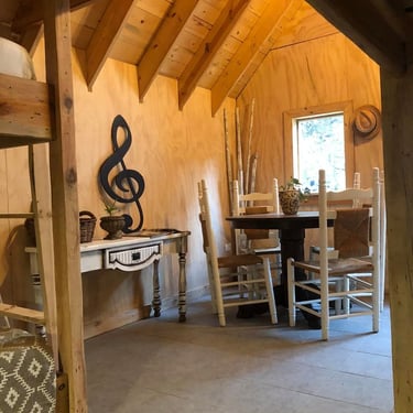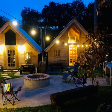 These two fully insulated American-style cabins both have what you need (hot shower, sink, mirror, high-speed Wi-Fi, microwave, refrigerator, air-conditioning, heat, television, comfortable beds, sheets, blankets, and more). Outside, each cabin has it's own covered picnic table, sink, grill, water, and prep area. A central fire pit is shared between the two cabins if someone else is there. Both also share the lighted swimming pool and palapa, and picnic areas.